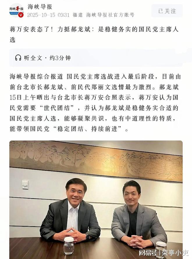 1.郑丽文已大势已去,“风向标”已从台湾所谓政治新星蒋万安力挺郝龙斌这里出现了。